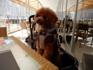 ふうたもいつものカートでおとなしく待機
